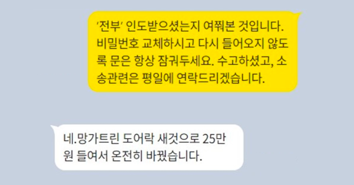 신청서 및 소장 접수일로부터 44일만에 최종 명도가 완료되었습니다.