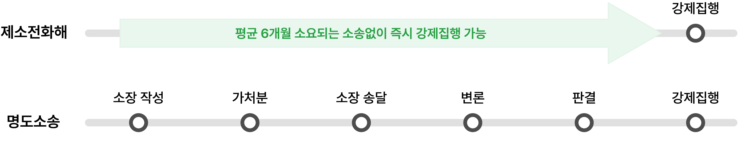 제소전화해를 준비한 임대인은, 평균 6개월 먼저 해결되었습니다. 명도소송은 평균 4-9개월 내외가 소요됩니다. 만약 임대차 계약서 '제소전화해'를 준비했다면, 즉시 강제집행에 착수할 수 있습니다.